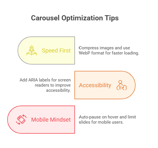 for screen readers. - Mobile Mindset: Auto-pause on hover; limit to 5-7 slides.