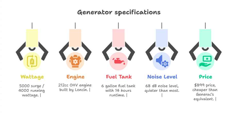 - Price: $899 (Generac’s equivalent costs $1,400)